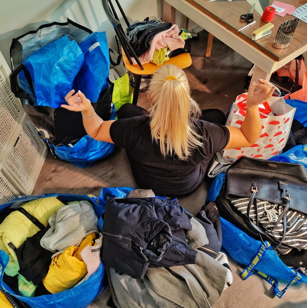 - Lajittelen poistuvat tavarat (jos voimavaroja ei ole, suosittelen kierrätystä – muutoin tavarat voi myydä erilaisilla kirppiksillä)